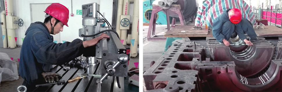 汽封制造加工完成后,現(xiàn)場專用設備調(diào)整間隙。